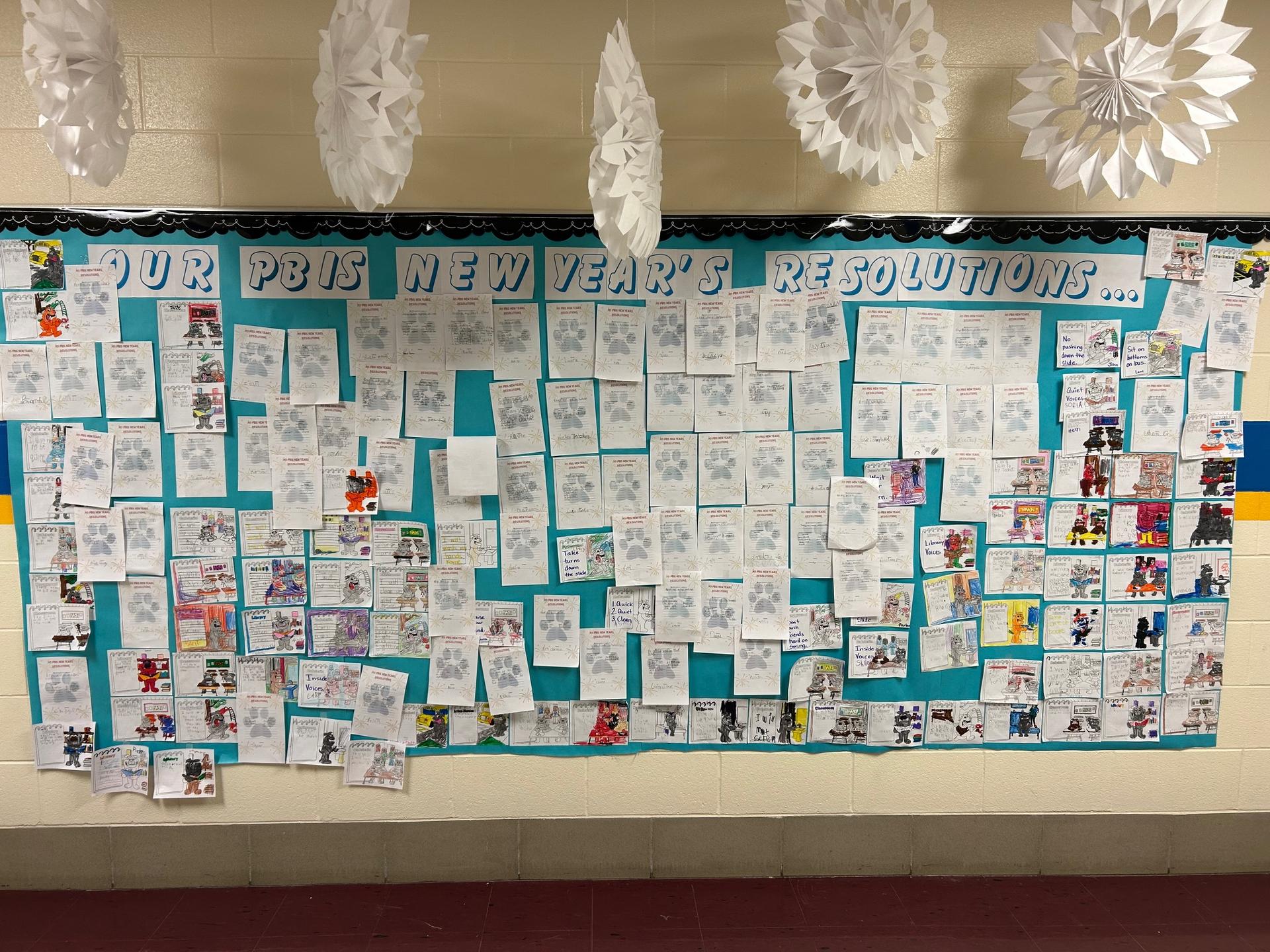 We have had a good first week back from break! Students have settled right back in and started the 2nd half of the year well! See above for a wall of P.B.IS. New Year resolutions that students made.